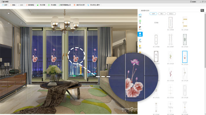 內置門窗常用色卡,鎖具等配套素材,用戶可以直接選擇使用,搭配門窗效果更佳