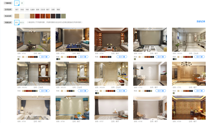 多種場景選擇:客廳、臥室、廚房等,可以通過空間、色系、場景來選擇、為您推送配套的風格場景、也可自己上傳現場實拍場景圖